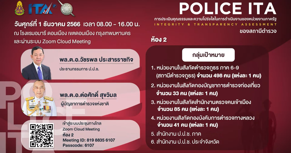 กิจกรรมชี้แจ้งการประเมิณคุณธรรมและความโปร่งใสในการดำเนินงานของหน่วยงานภาครัฐ (Integrity & Transparency Assessment : ITA ) ของสถานีตำรวจ ประจำปีงบประมาณ พ.ศ. 2567 วันพุธที่ 30 พฤศจิกายน 2566 15 กันยายน 2565 โดย kraburi_wp / ข่าวประชาสัมพันธ์,ข่าวฝากประชาสัมพันธ์
