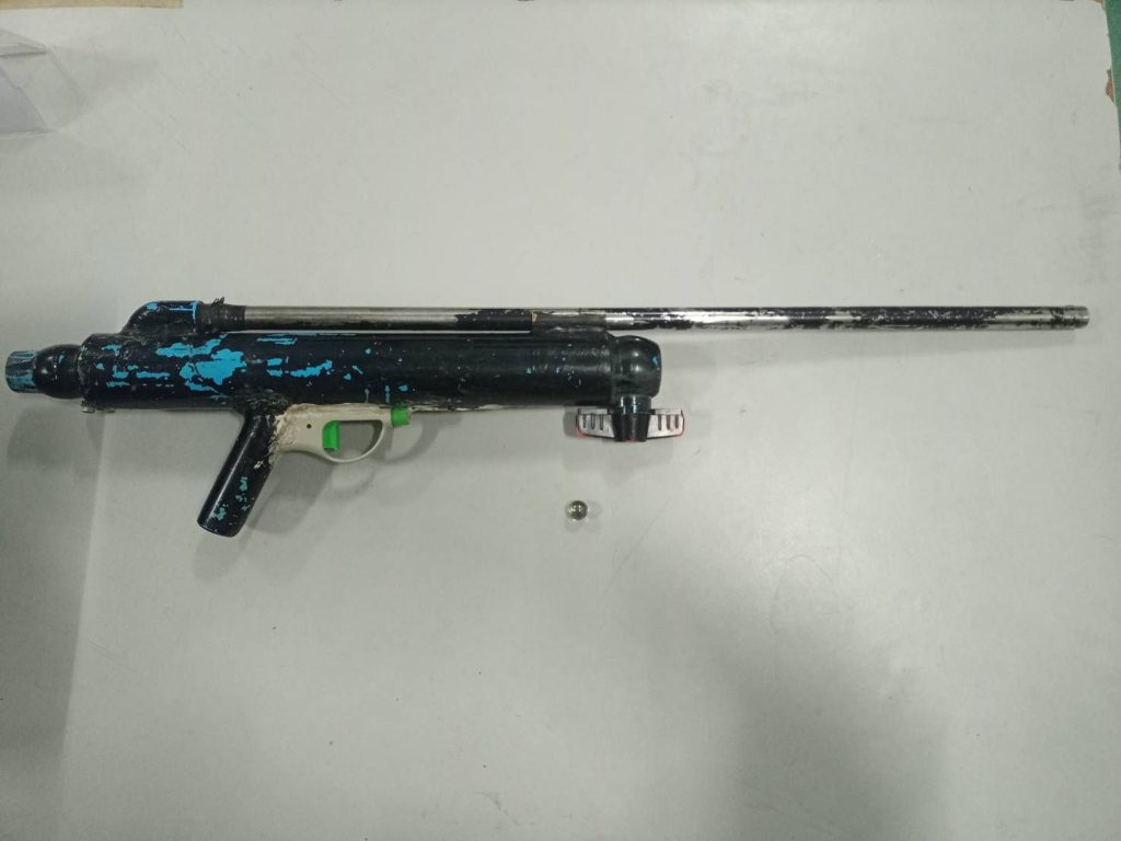 ❎พร้อมด้วยของกลาง อาวุธปืนยาวประดิษฐ์เอง (ปืนลูกแก้ว) จำนวน 1 กระบอก