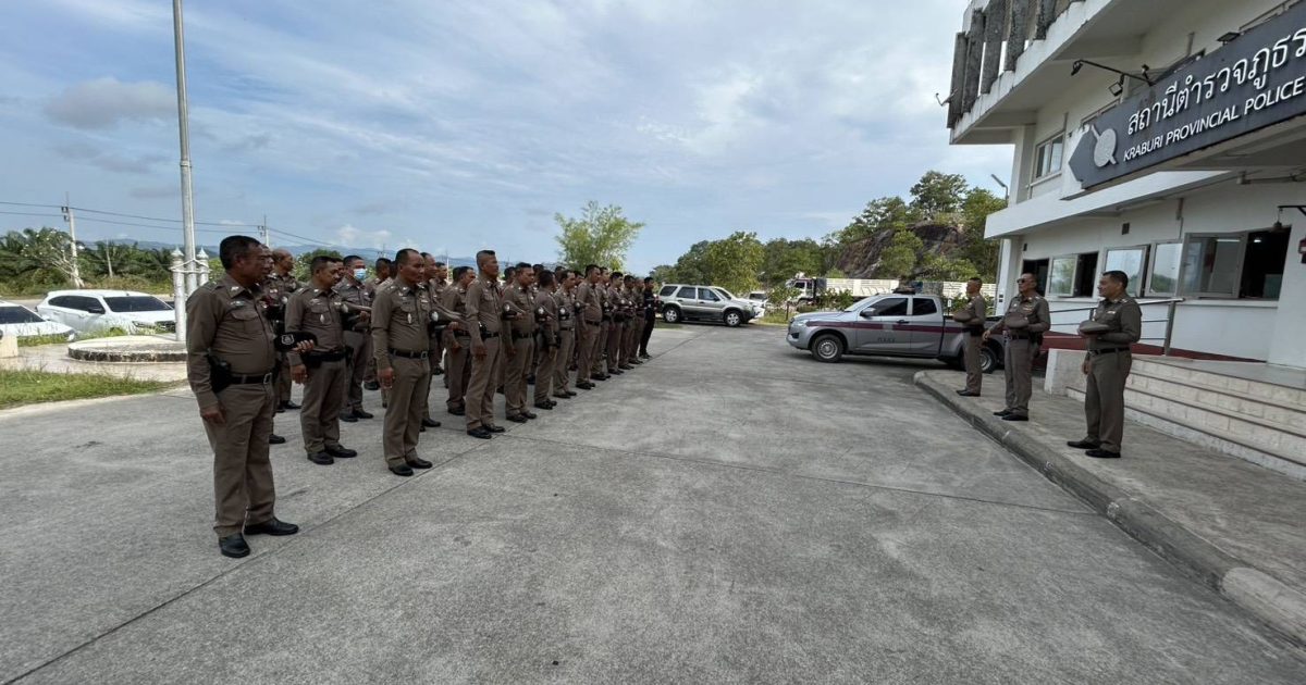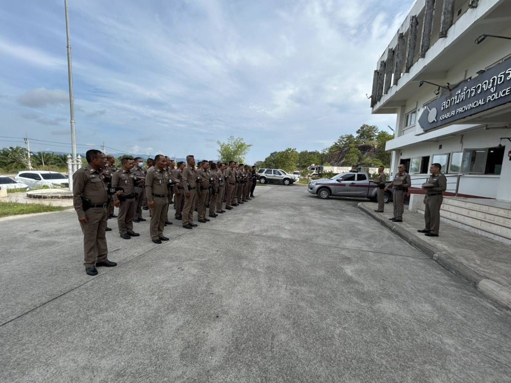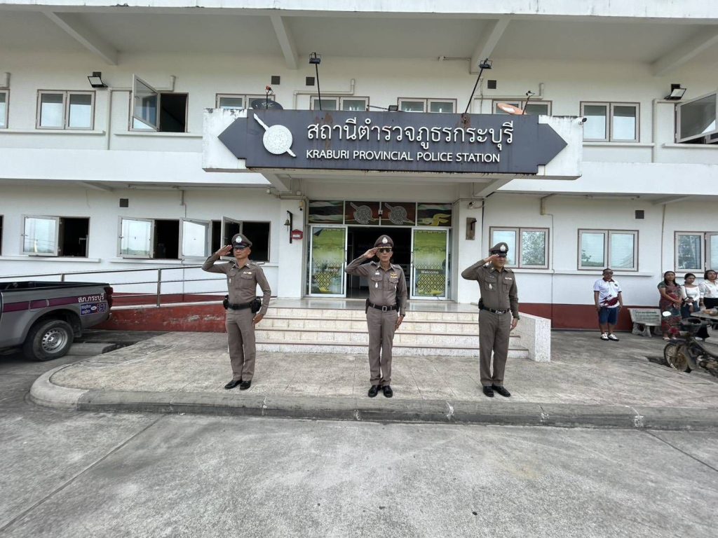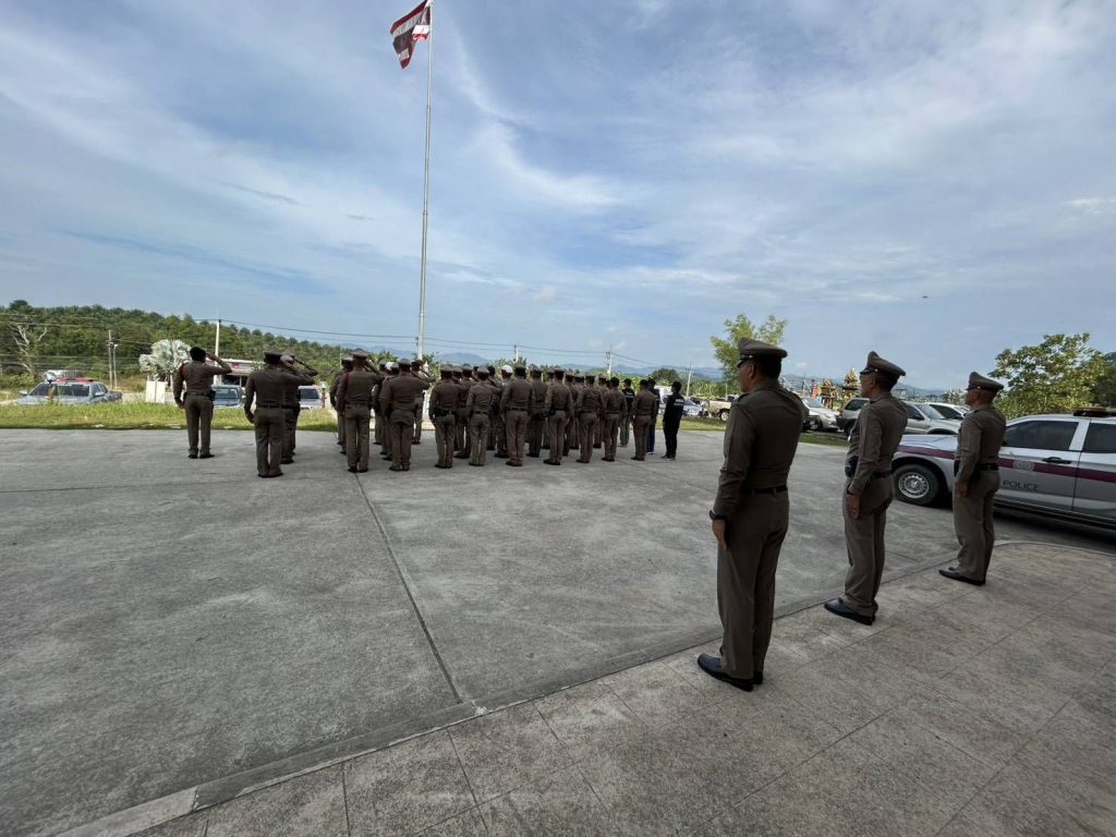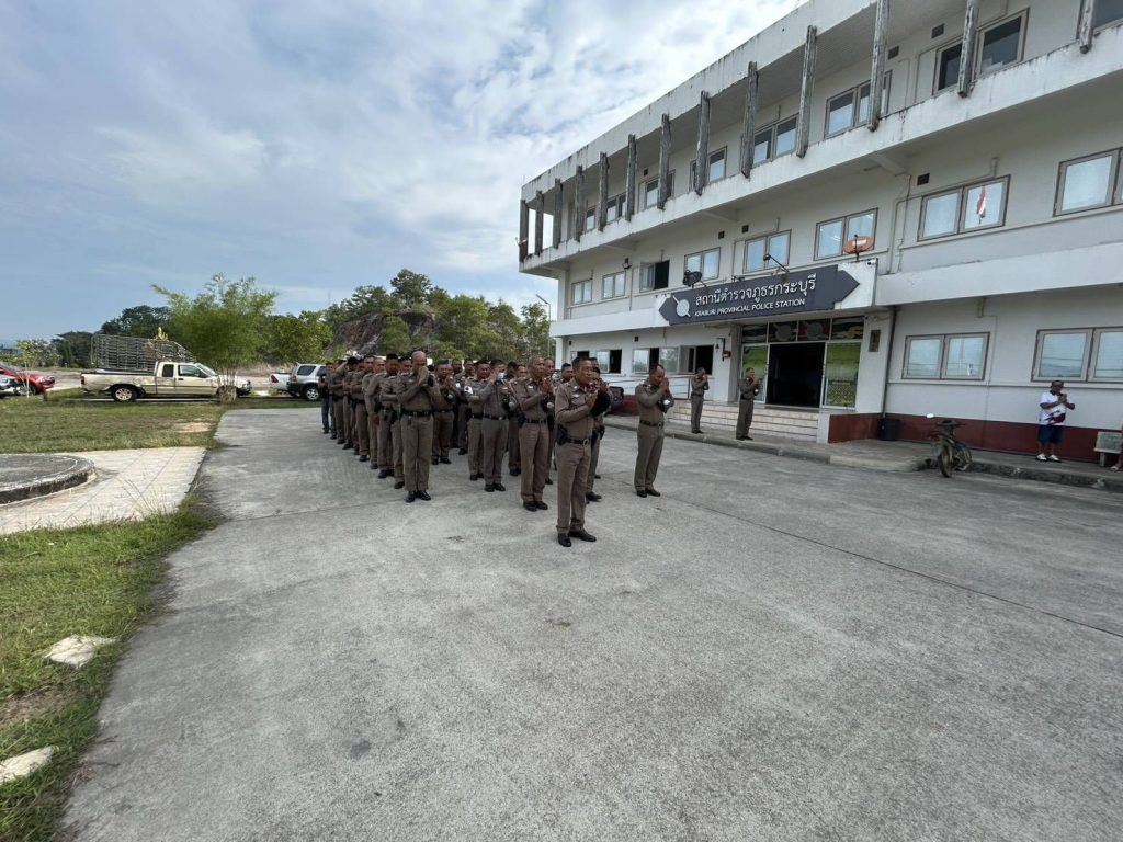 ได้สั่งการให้ข้าราชการตำรวจ สภ.กระบุรี ร่วมเข้าแถวเคารพธงชาติ กล่าวคำสัตย์ปฏิญาณ อุดมคติ และได้ชี้แจงข้อราชการ
