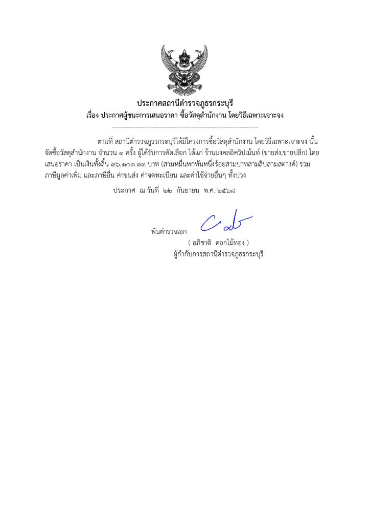 ประกาศสถานีตำรวจภูธรกระบุรีเรื่อง ประกาศผู้ชนะการเสนอราคา ซื้อวัสดุสำนักงาน โดยวิธีเฉพาะเจาะจง 30 กันยายน 2568 โดย kraburi_wp / ข่าวประชาสัมพันธ์,ข่าวประชาสัมพันธ์,ข่าวฝากประชาสัมพันธ์ ประกาศสถานีตำรวจภูธรกระบุรี ผู้ชนะเสนอราดาวน์โหลด