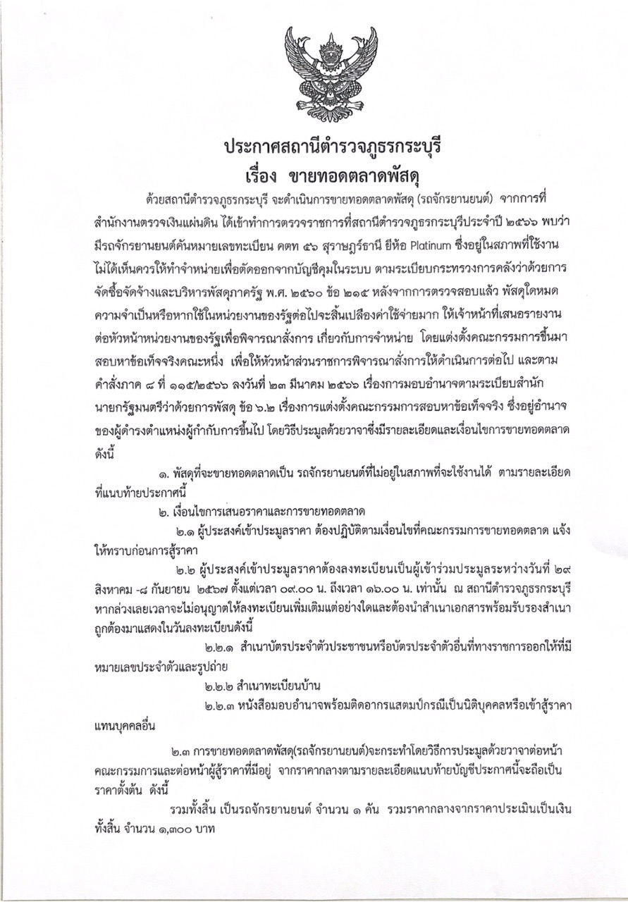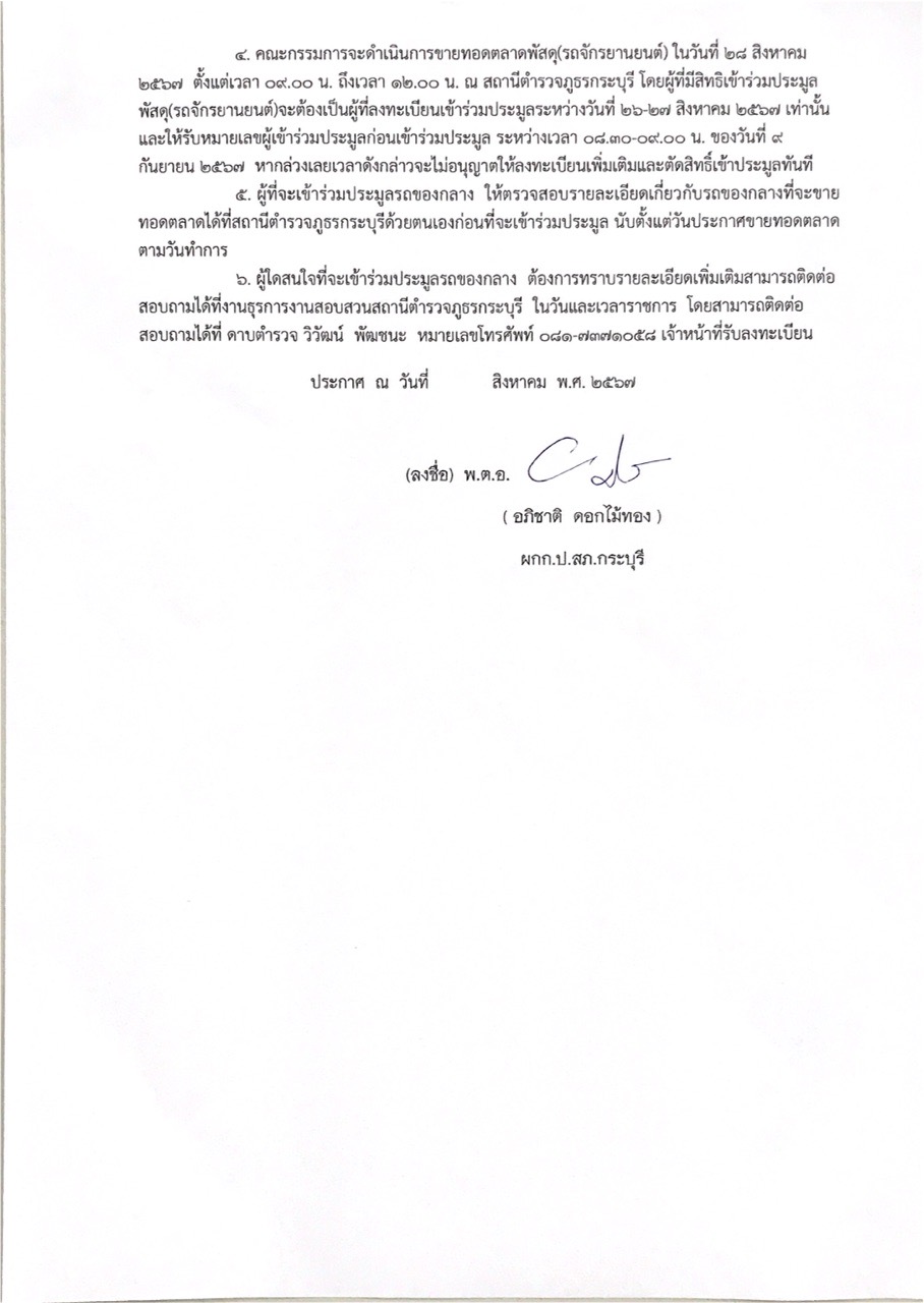 ประกาศสถานีตำรวจภูธรกระบุรี เรื่อง ขายทอดตลาดพัสดุ 29 สิงหาคม 2567 โดย kraburi_wp / ข่าวประชาสัมพันธ์,ข่าวประชาสัมพันธ์,ข่าวฝากประชาสัมพันธ์,ข่าวจัดซื้อจัดจ้าง,งานการเงินและพัสดุ,ไม่มีหมวดหมู่ List Item Previous Next