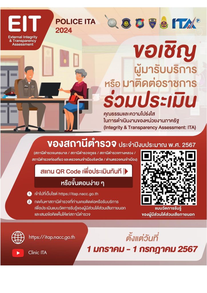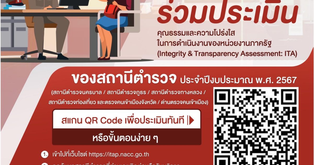 สภ.กระบุรี ขอเชิญผู้มารับบริการ หรือผู้มาติดต่อราชการร่วมประเมินคุณธรรมความโปร่งใสในการดำเนินงานของหน่วยงานภาครัฐ ของสถานีตำรวจภูธรกระบุรี ประจำปีงบประมาณ 2567 25 เมษายน 2567 โดย kraburi_wp / การขับเคลื่อนการประเมิน ITA ปีงบประมาณ 2567,ข่าวประชาสัมพันธ์ สภ.กระบุรี ขอเชิญผู้มารับบริการ หรือผู้มาติดต่อราชการร่วมประเมินคุณธรรมความโปร่งใสในการดำเนินงานของหน่วยงานภาครัฐ ของสถานีตำรวจภูธรกระบุรี ประจำปีงบประมาณ 2567 โดยสามารถแสกนคิวอาร์โค้ดข้างต้นเพื่อทำการประเมินได้ทันที