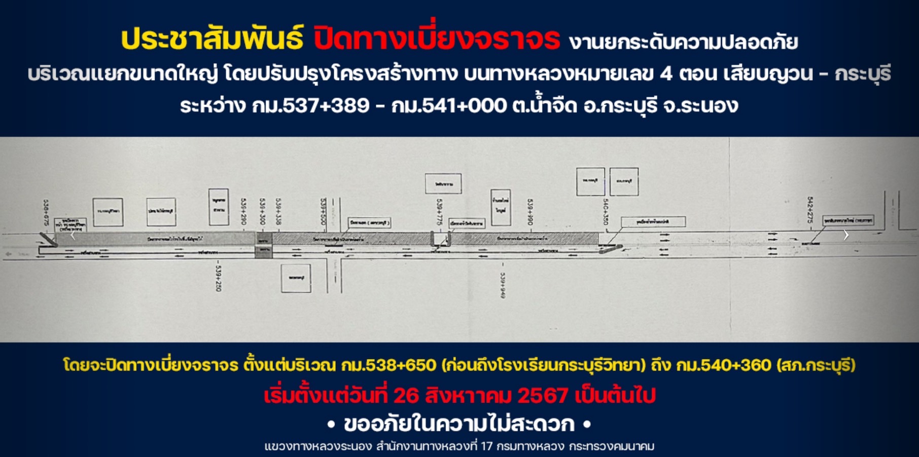 สภ.กระบุรี ประชาสัมพันธ์ปิดทางเบี่ยงจราจร 16 กันยายน 2567 โดย kraburi_wp สถานีตำรวจภูธรกระบุรี ประชาสัมพันธ์ปิดทางเบี่ยงจราจร