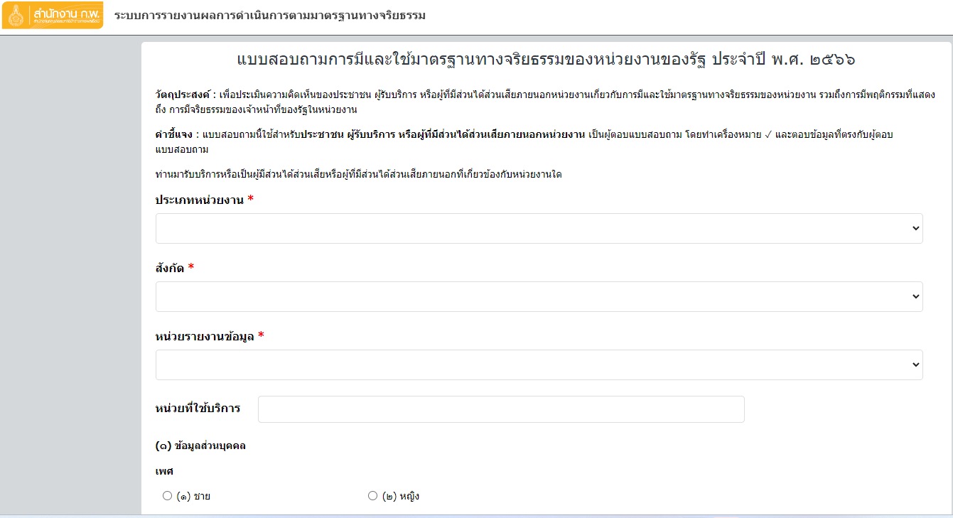 แบบสอบถามการมีและใช้มาตรฐานทางจริยธรรมของหน่วยงานของรัฐ ประจำปี พ.ศ. ๒๕๖๖
