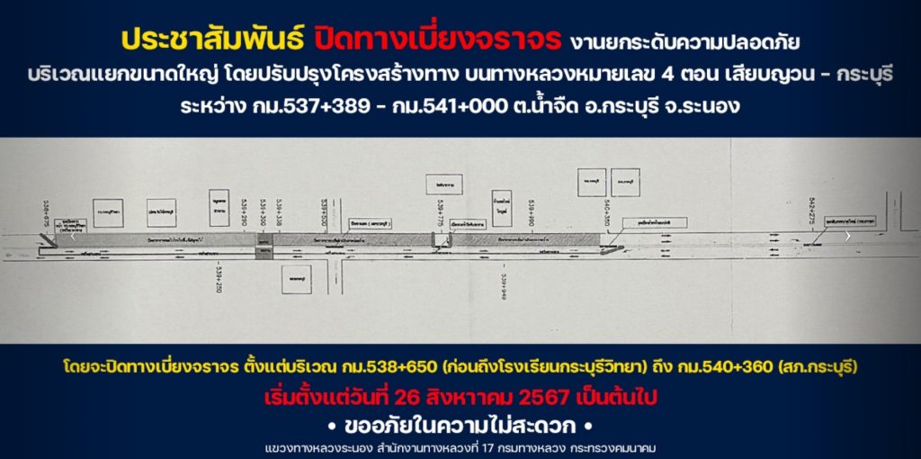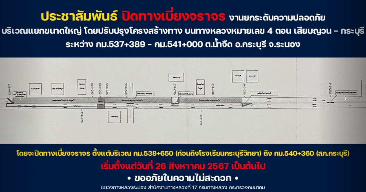 สภ.กระบุรี ประชาสัมพันธ์ปิดทางเบี่ยงจราจร 16 กันยายน 2567 โดย kraburi_wp / ข่าวประชาสัมพันธ์,ไม่มีหมวดหมู่ สถานีตำรวจภูธรกระบุรี ประชาสัมพันธ์ปิดทางเบี่ยงจราจร